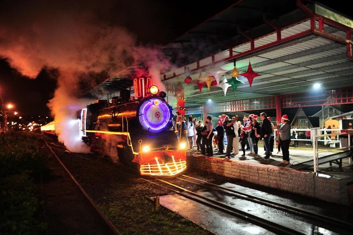 Em horário determinado pelo operador local, fareos o tour Natal Sobre Trilhos no Trem Maria fumaça. O Papai Noel espera por você na charmosa Maria Fumaça – Trem do Vinho. A magia tem início na visita ao Epopeia Italiana e segue durante todo o passeio na Maria Fumaça.
